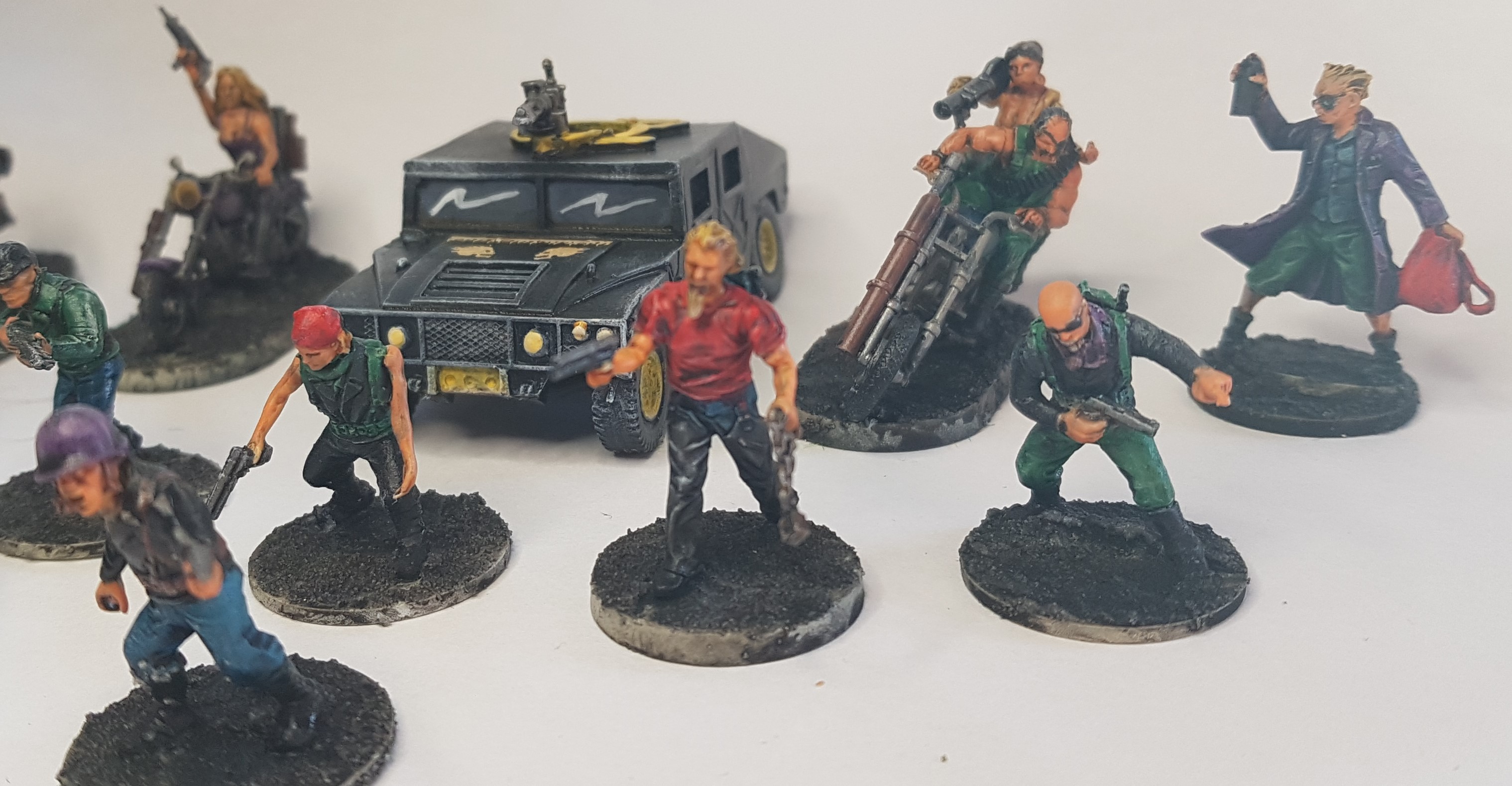 This is the first set of miniatures from the Project Z ultimate set, it is made from the Biker set, the Biker Boss set, a sprue of Bolt Action WW2 Americans I had lying around, Doctor Puke and the Spec Ops vehicle.