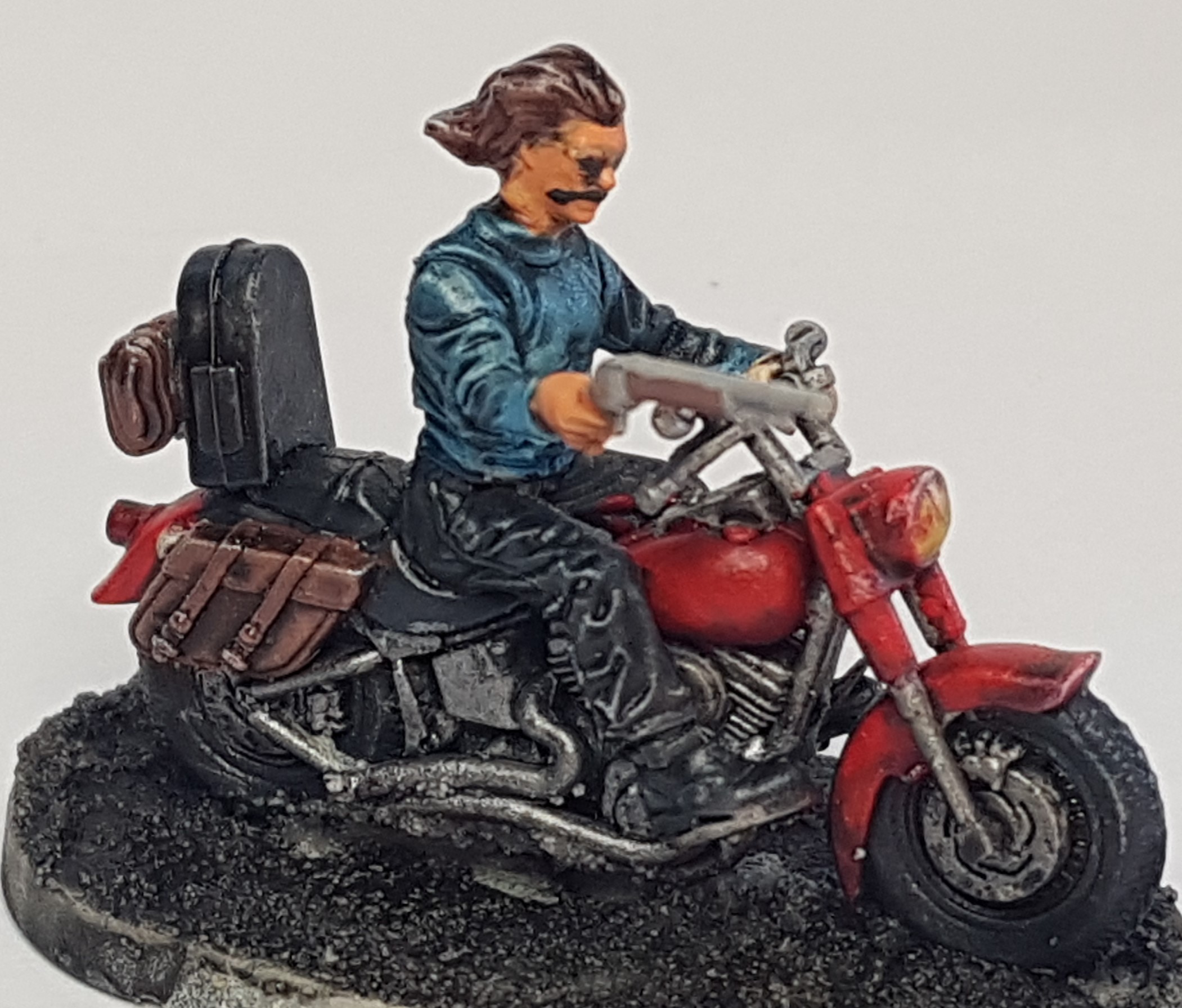 Next up the Biker Boss and heavily armed friend, who alas has lost her Katana but still wears the scabard incase she finds a new one.