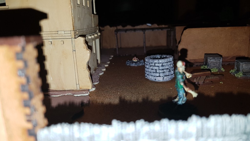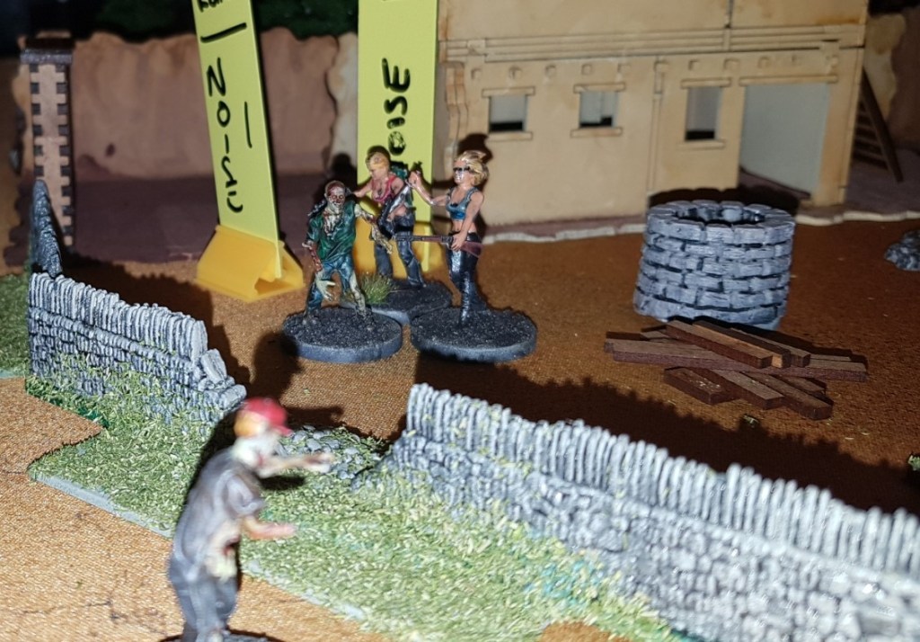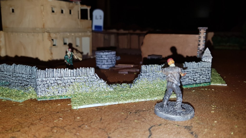 The other zombie is still moving to wards the other sound, 2Ap to climb over wall and 3″ towards the noise.