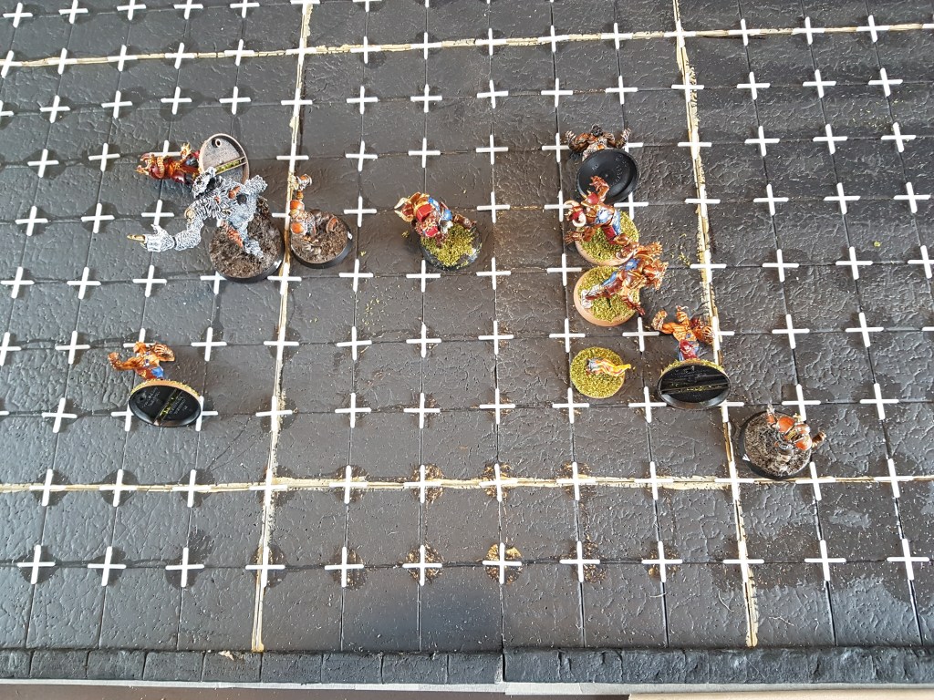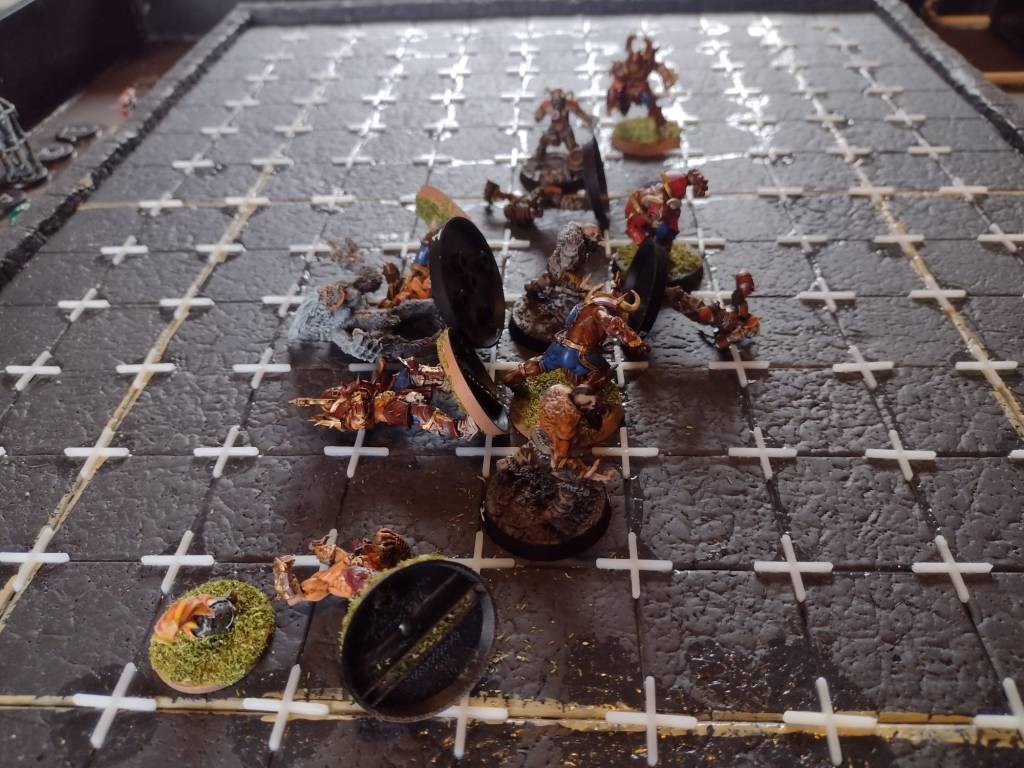 Fjord explorers vs crunchy nuts Khorne flakes, from the Nethertown Division of the WnW Wargaming League.