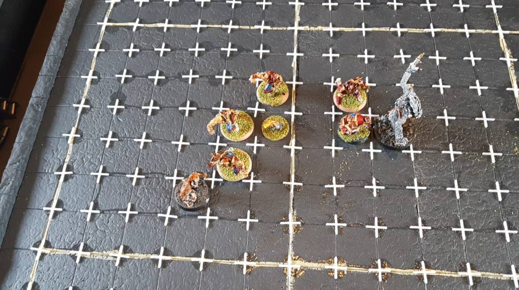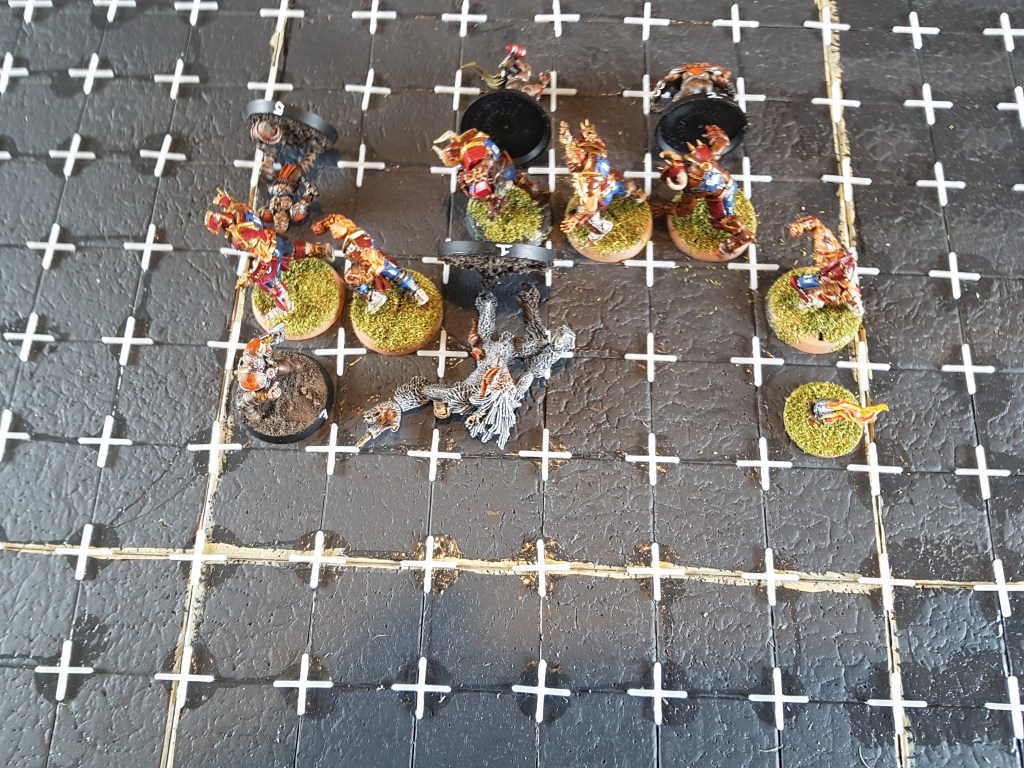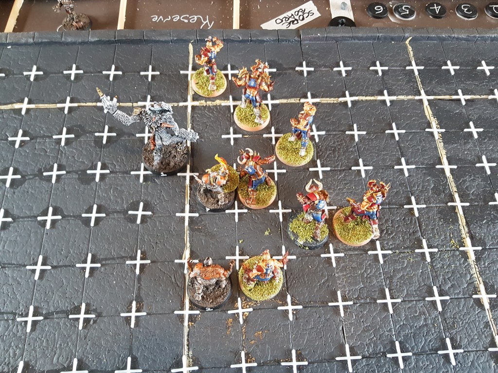 Kick off – Crunchy Nut won toss and chose to receive. The Norse setup and the ball is kicked, during its flight (kick off event) two players have arguments with the ref during the kick off both get knocked flat, so match started with both Khorne and the Norse having 1 stunned player on the field.