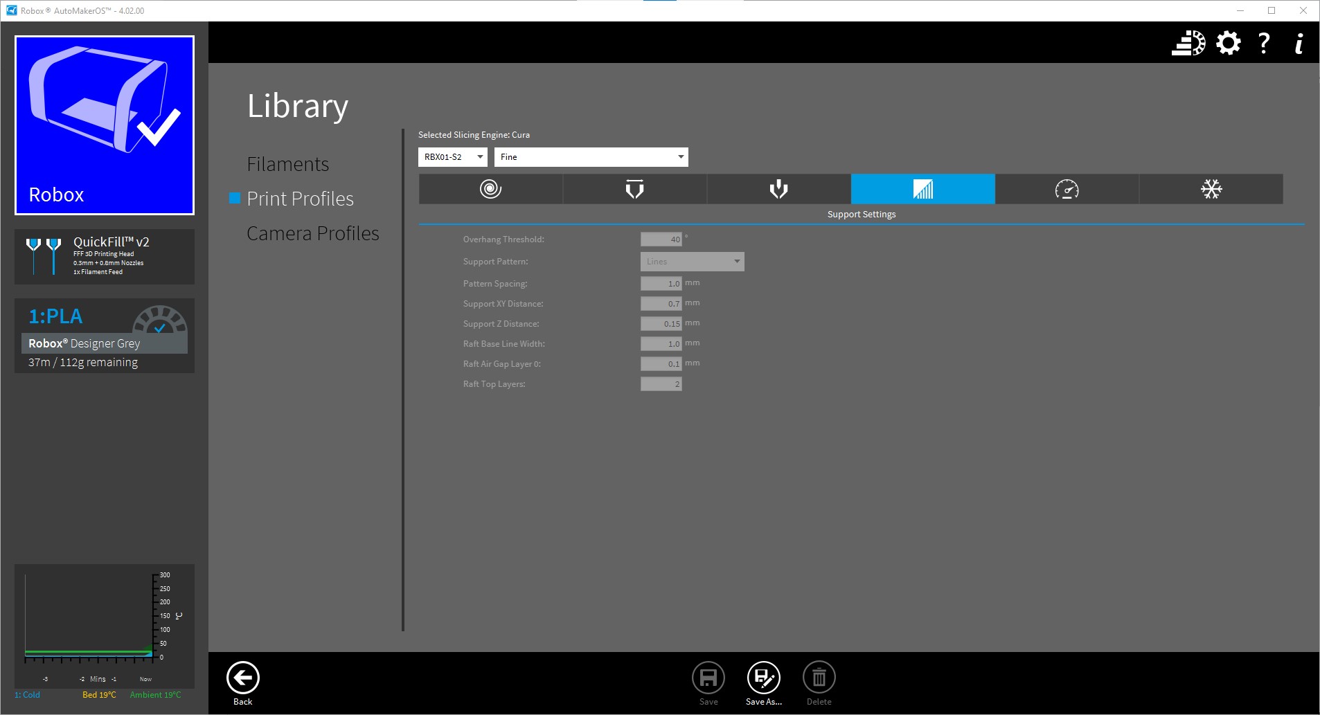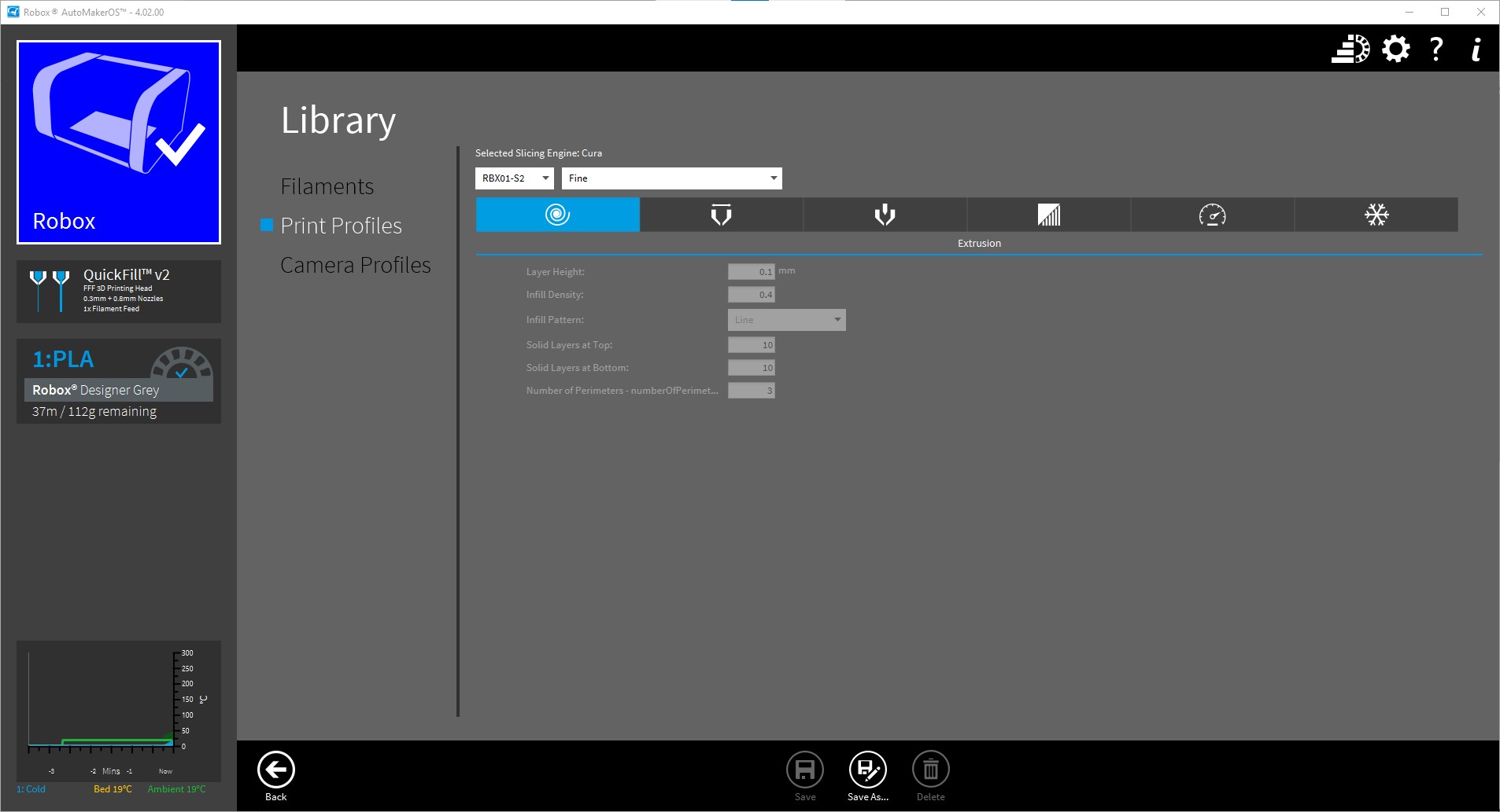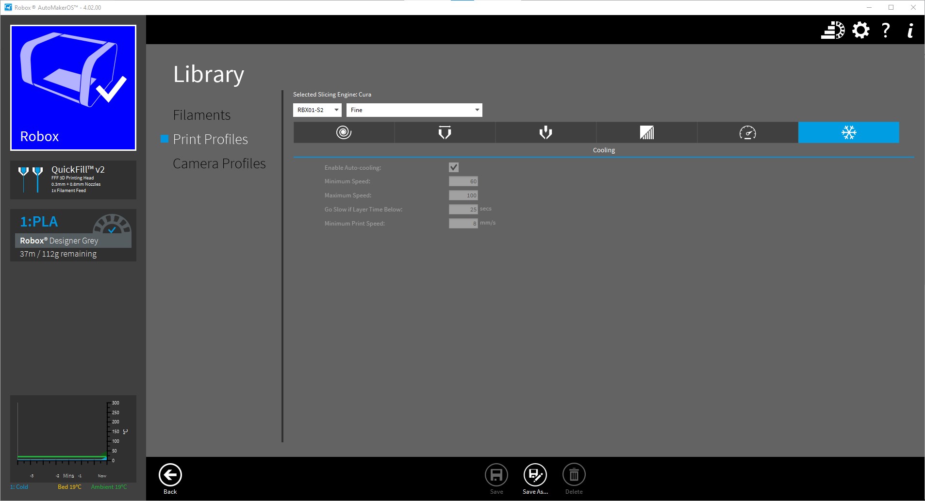 And control the print and print settings using CEL’s Robox Automaker software which is available free and I print the miniatures using the pre-set fine print settings –