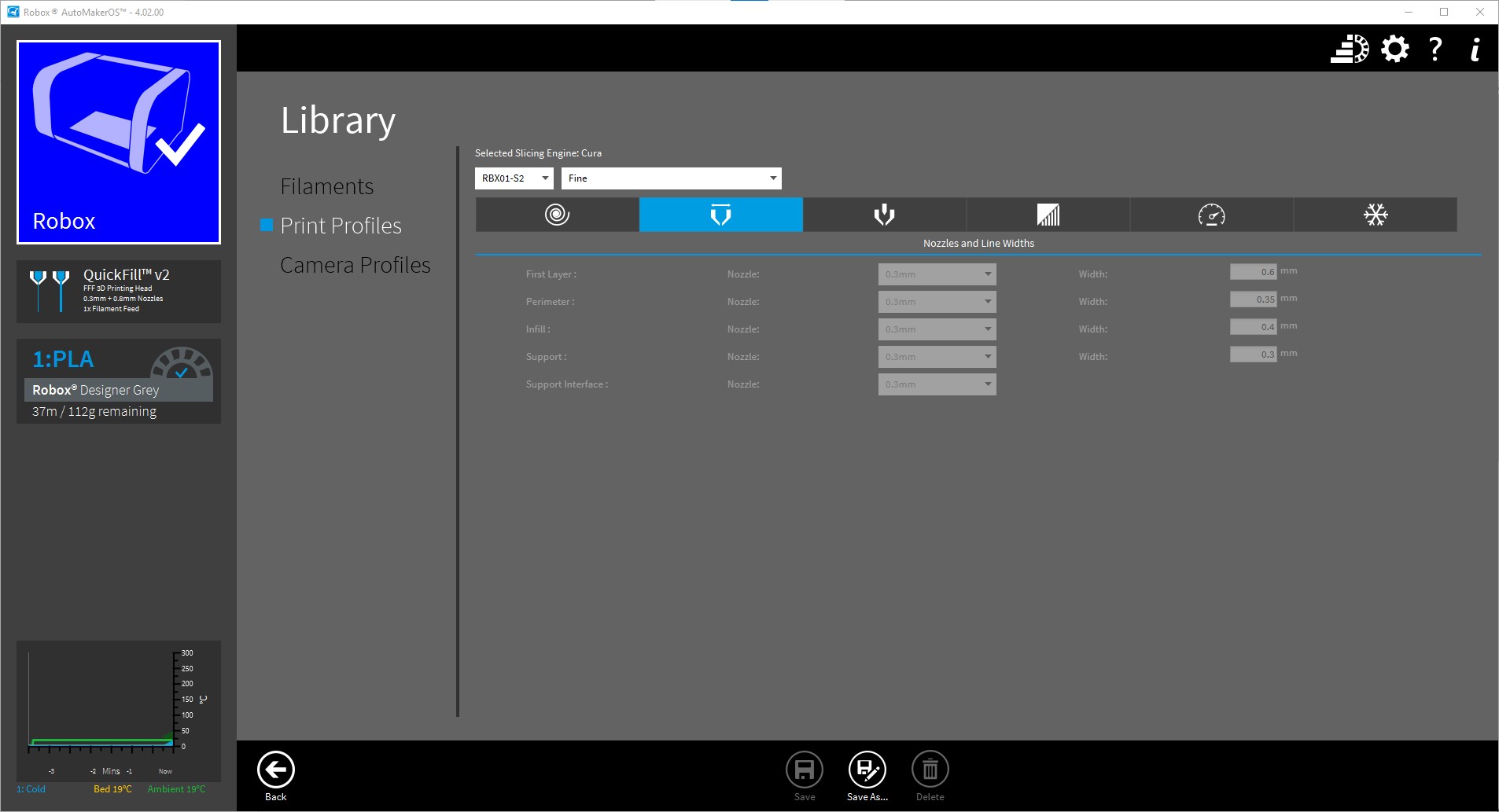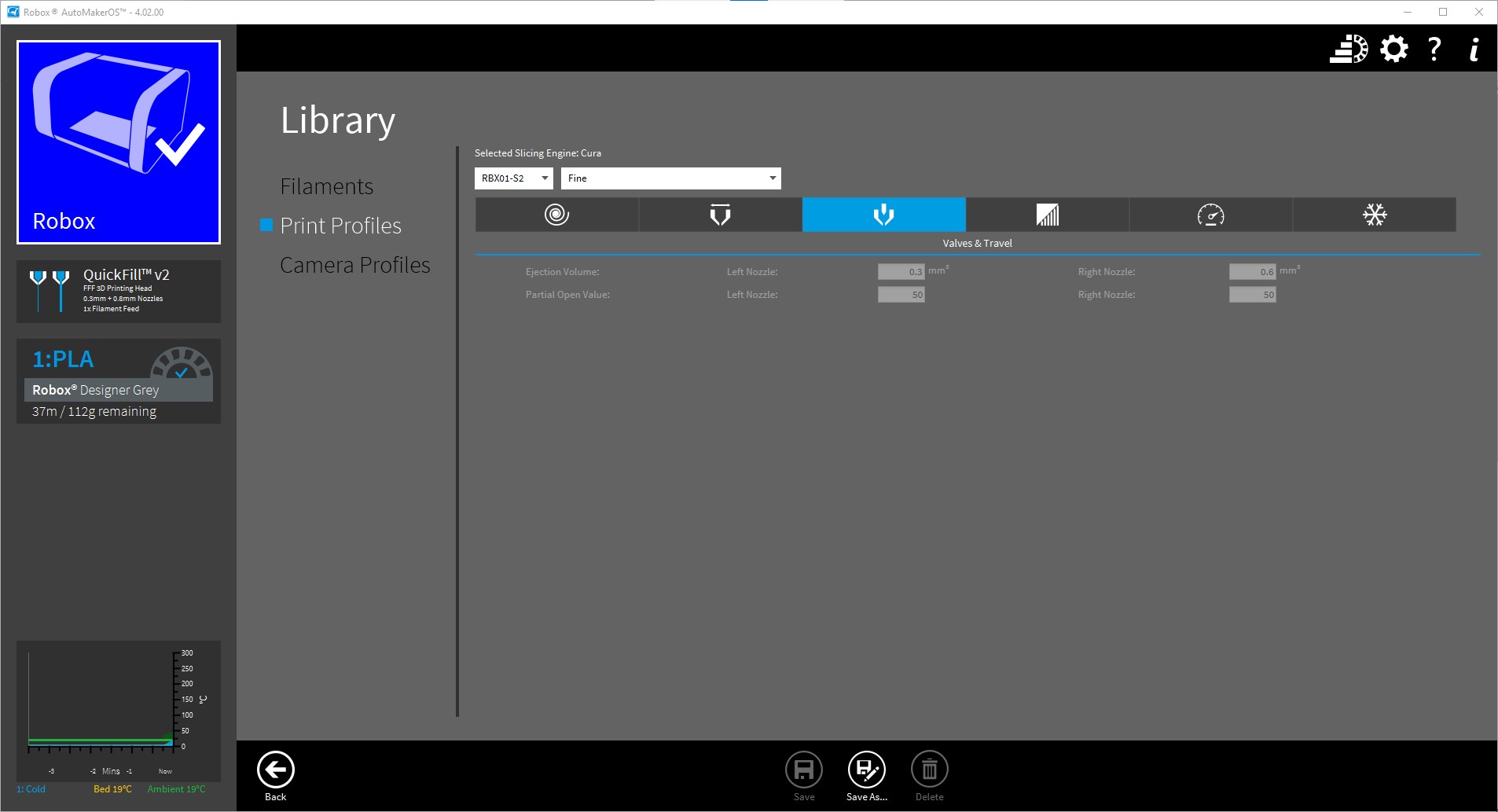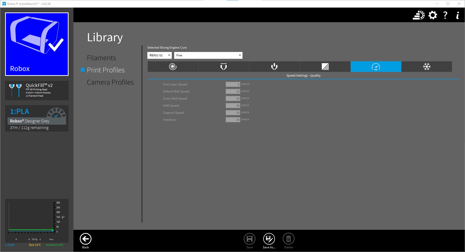 And control the print and print settings using CEL’s Robox Automaker software which is available free and I print the miniatures using the pre-set fine print settings –