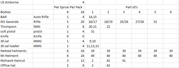 Ok having developed my squad IMPACTFULNESS calculator, and having the 4 sprues of American Paratroopers from the Band of Brothers starter set to build I thought I’d use it to compare the recommended lists from the pack with other options.
