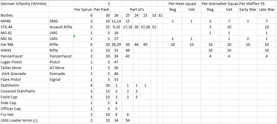 So I previously looked at what I could build using the Band of Brothers starter set Germans – WW2 – Band of Brothers – squad Optimisation Part 2, now I am going to plan how to build the Winter Germans, these will potentially be used for the pro nazi French LVF which then became the 33rd Waffen Grenadier Division aka the Charlemagne Division.