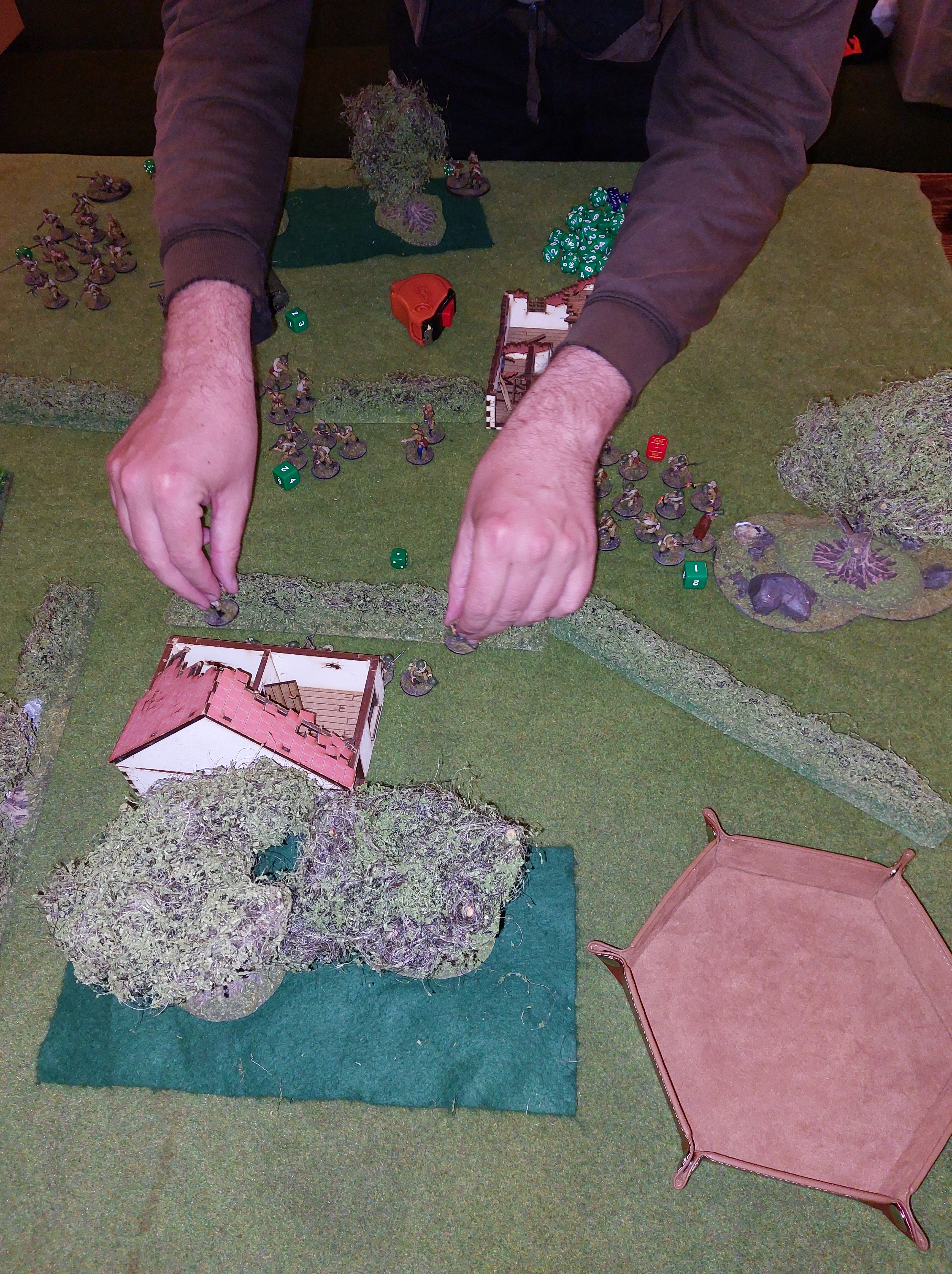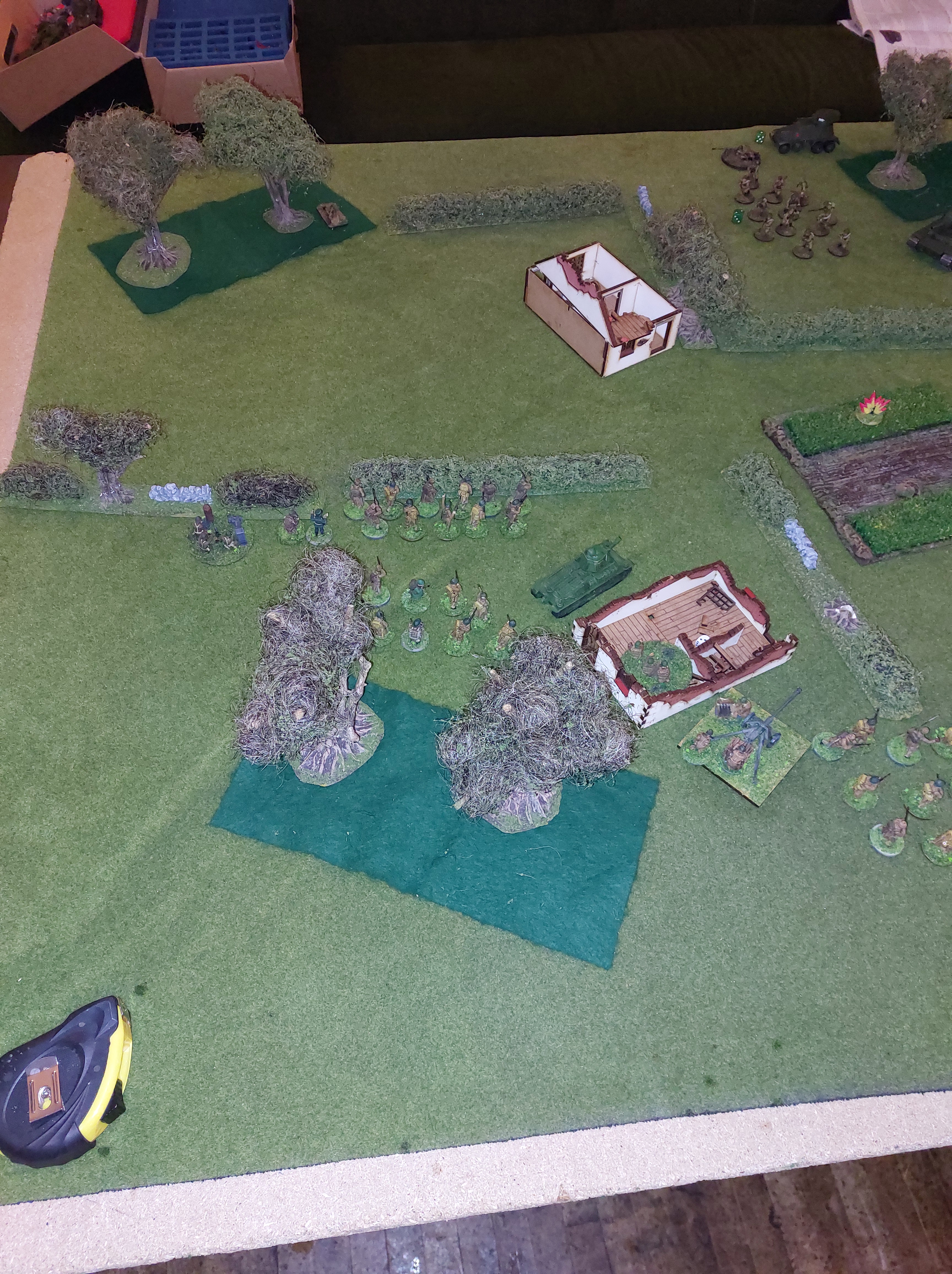 Beginning of turn 2 saw a french rifle squad assault a russian smg squad and remove then, the squad then managed to reposition in to the ruined building, which they occupied till the end of the game and assaulting and removing another russian squad.