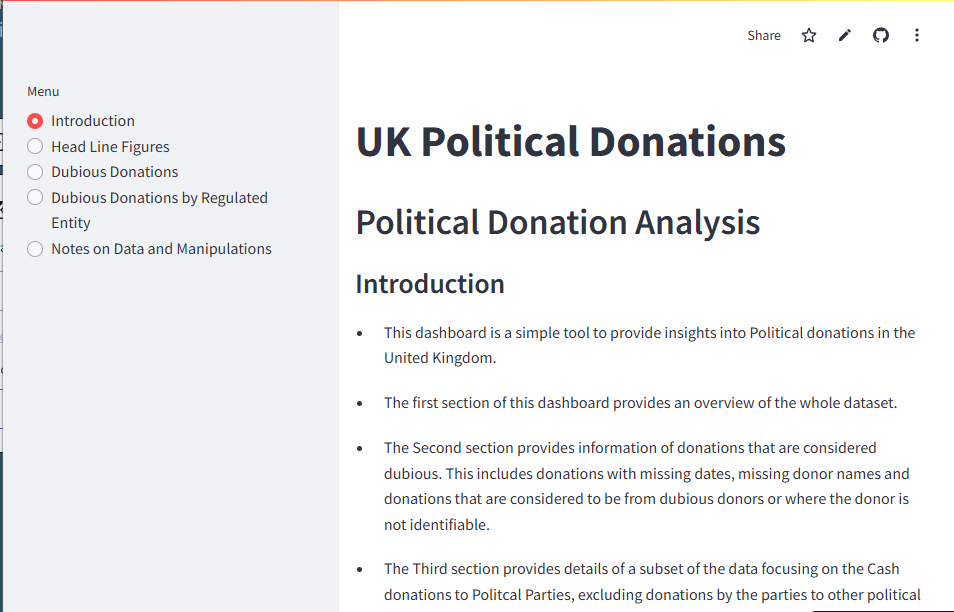 As part of that I have created and I am still working on this dashboard looking at Political Donations in the UK between 2001 and 2019 – I am also looking to extend the data when I find a reliable source.