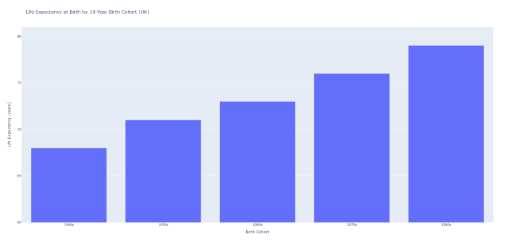 | 1940s | 68 years | ONS Life Tables |