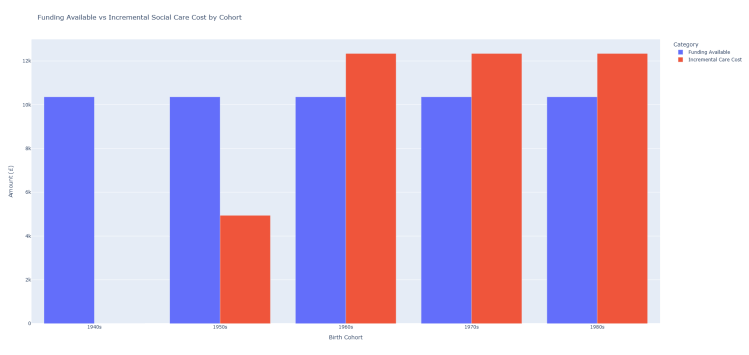 | Birth Cohort | Extra Years of Life | Incremental Care Cost (£) | Funding Available (£) | Shortfall (£) |