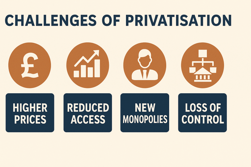 - Lower investment: Many privatised companies reduced long-term investment while increasing dividends (Ofwat, Ofgem).
