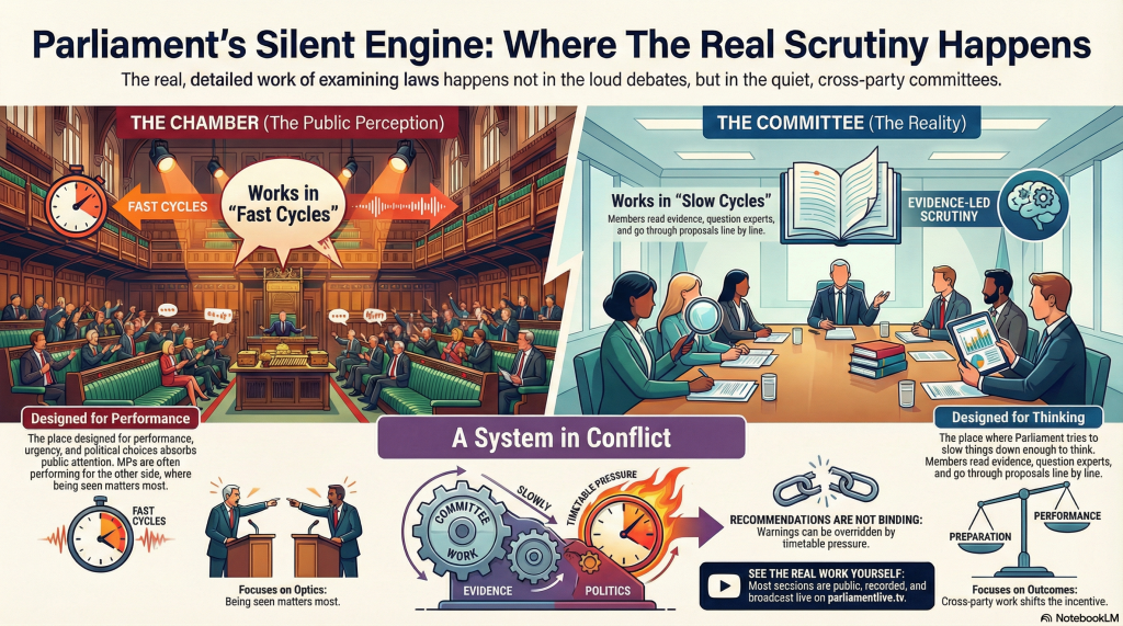 So while committees can do deep scrutiny, they’re often doing it under quiet pressure.