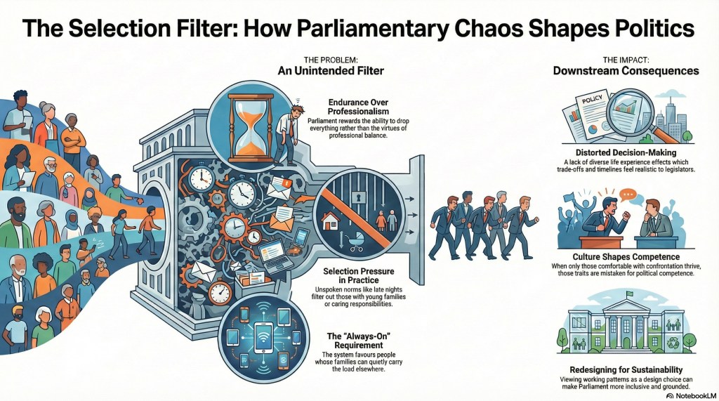 If the working patterns of Parliament quietly select for certain kinds of people…