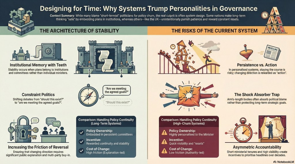 If Parliament itself still operates on compressed timeframes — if attention, credit, and blame are all short-term — then no amount of delegation can fully solve that.