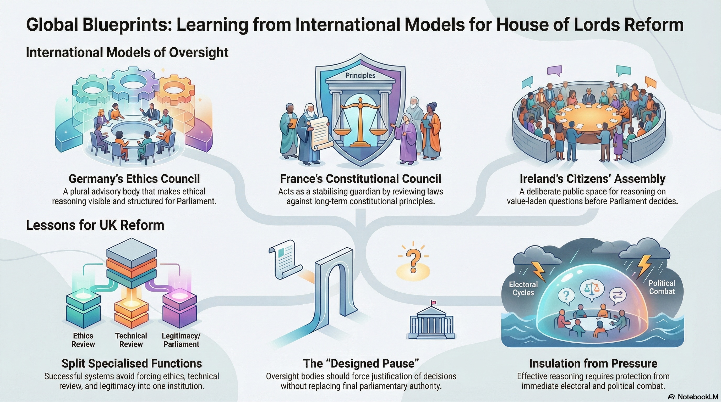 Most countries don’t try to cram ethical reasoning, constitutional caution, technical legislative review, and democratic legitimacy into a single unelected chamber and hope it somehow balances itself.