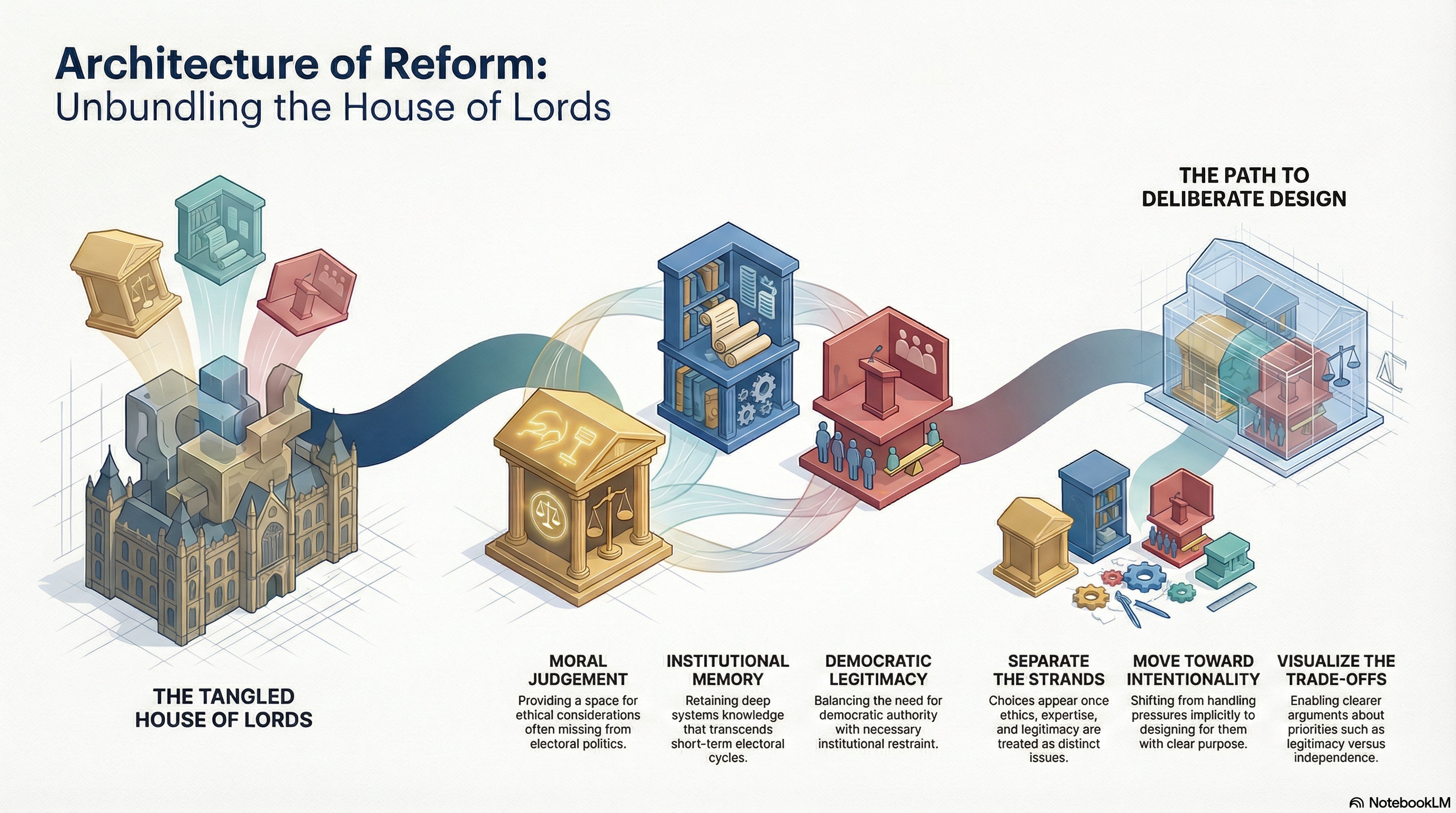 Once those trade-offs are visible, disagreement becomes more productive. People can argue about priorities — legitimacy versus independence, speed versus caution, clarity versus flexibility — instead of talking past each other about whether the Lords is an anachronism or a safeguard.